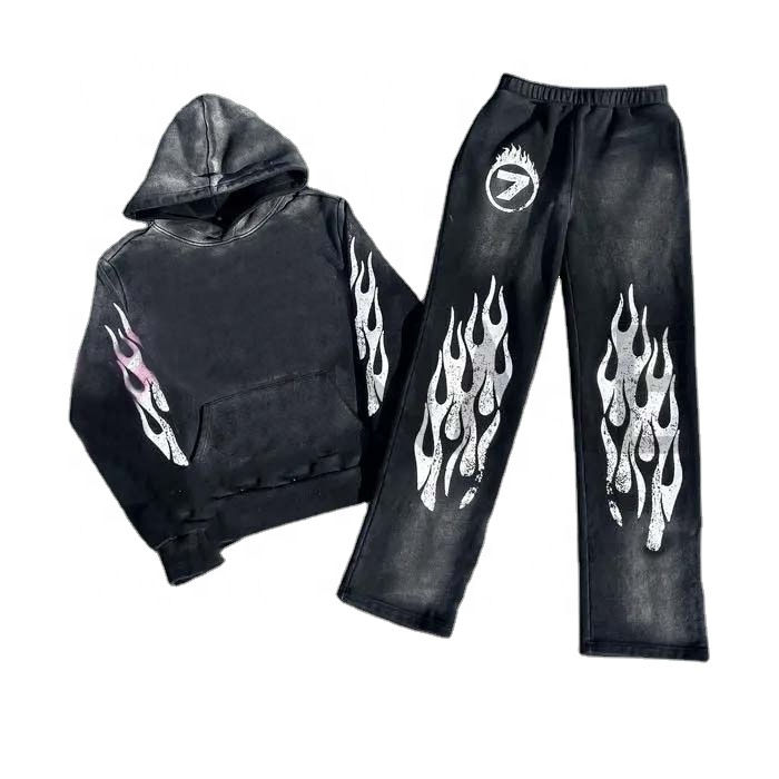 Low MOQ Wholesale Custom Logo Printed Winter High Quality Pullover Cropped Hoodie Set Unisex Streetwear Thermal Jogger Set Full