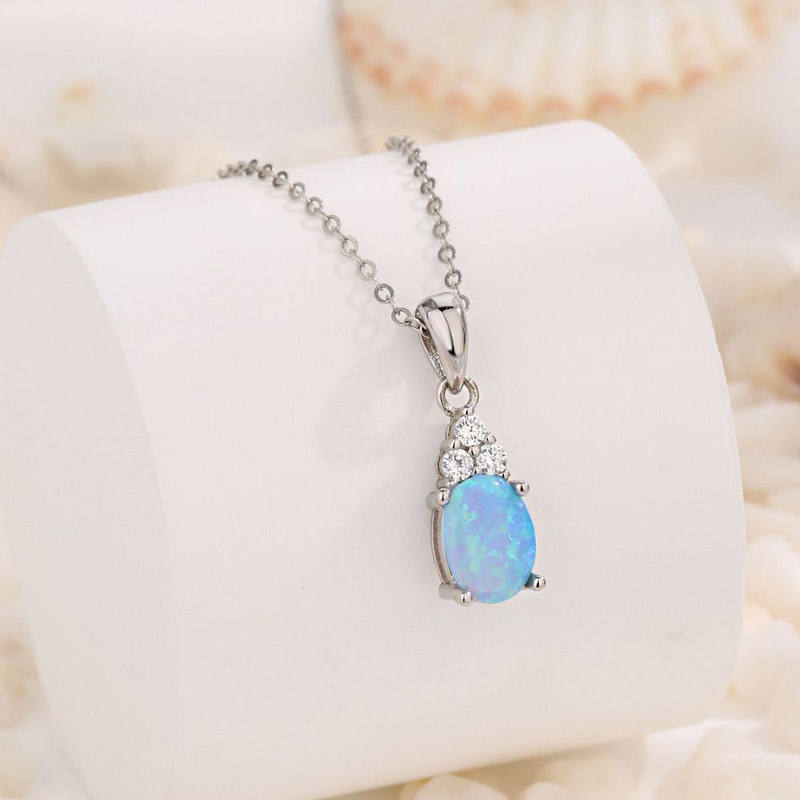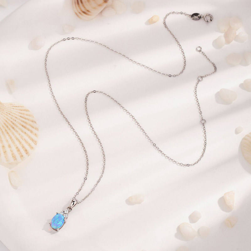 Low MOQ Wholesale Fine Jewelry Minimalist Dainty Women 925 Sterling Silver Blue Opal Necklace