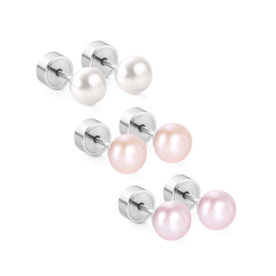 Low MOQ Wholesale Minimalism Stud Earring Stainless Steel Jewelry 18K Gold Plated Fashion Pearl Screw Earring for Girls