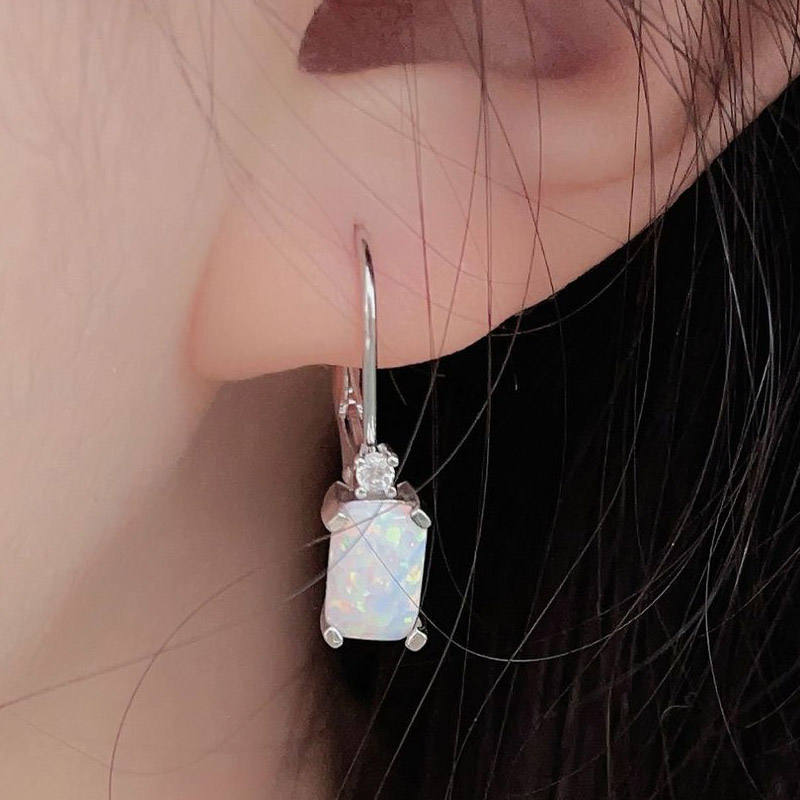 Wholesale Jewelry 925 Sterling Silver French Hook Hinge Huggie Hoop Princess Cut Zircon Drop Earrings for Party & Gift