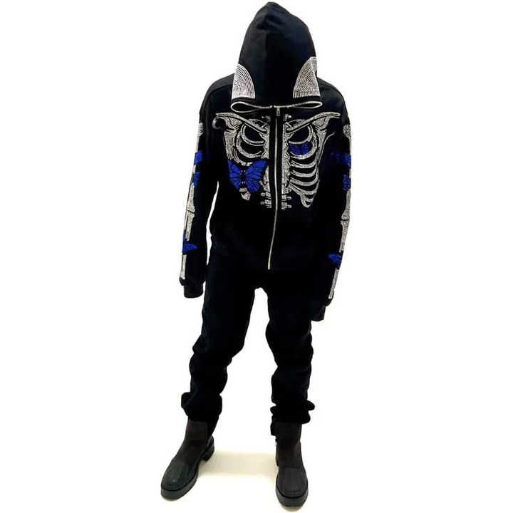 Low MOQ Winter Men's Vintage Solid Rhinestone Lightweight Elastic Waist Tracksuit Hooded Breathable Fabric High Quality Sets