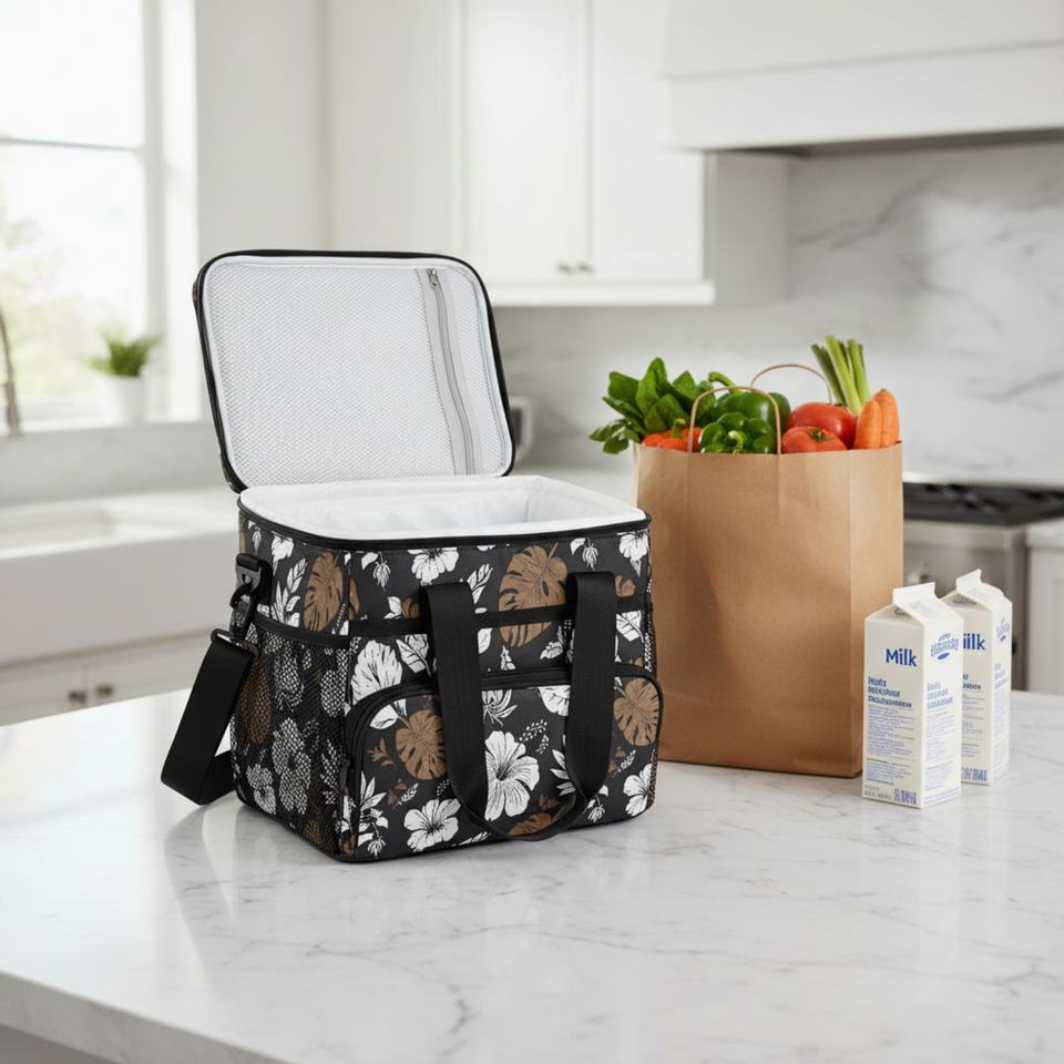 Low Moq Custom Design Leakproof Insulated Large Lunch Bag Beach Cooler Tote Floral Picnic Cooler Bag with Adjustable Straps