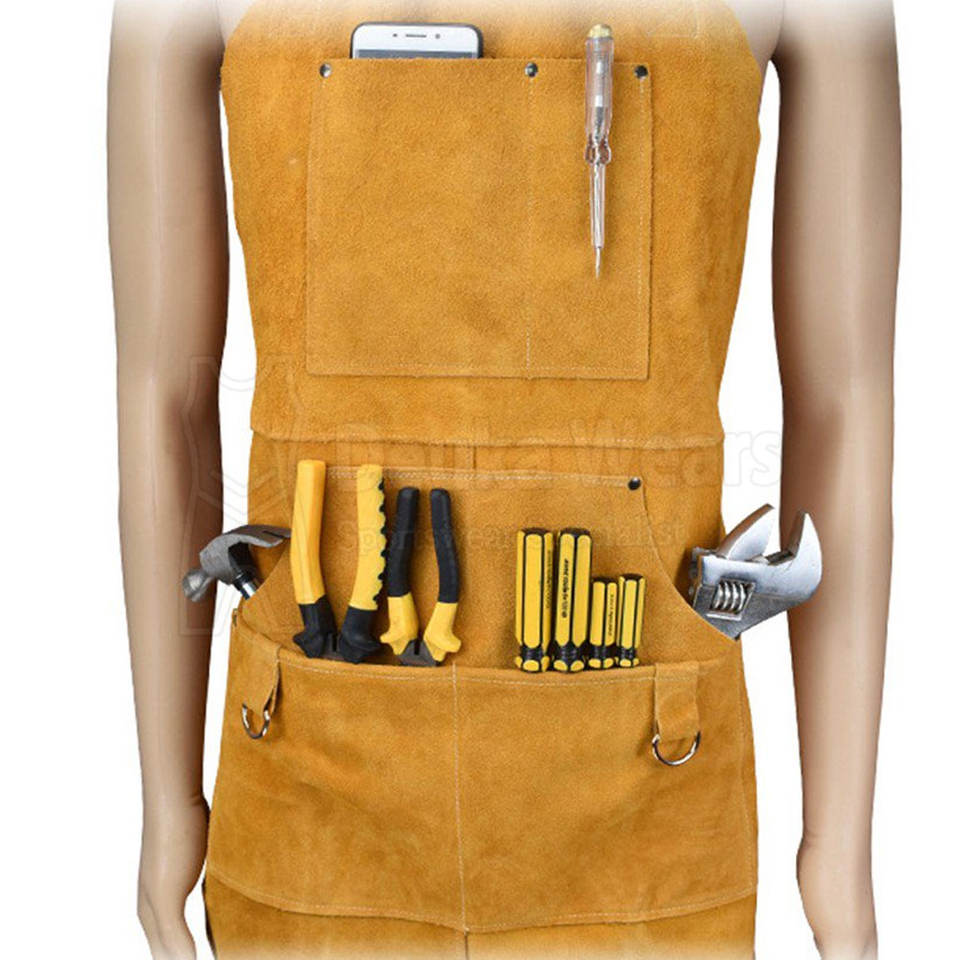 Low Moq Custom Pattern Sleeveless Work Wear Safety Clothing Custom Leather Comfortable Lightweight Welding Aprons With 6 Pockets