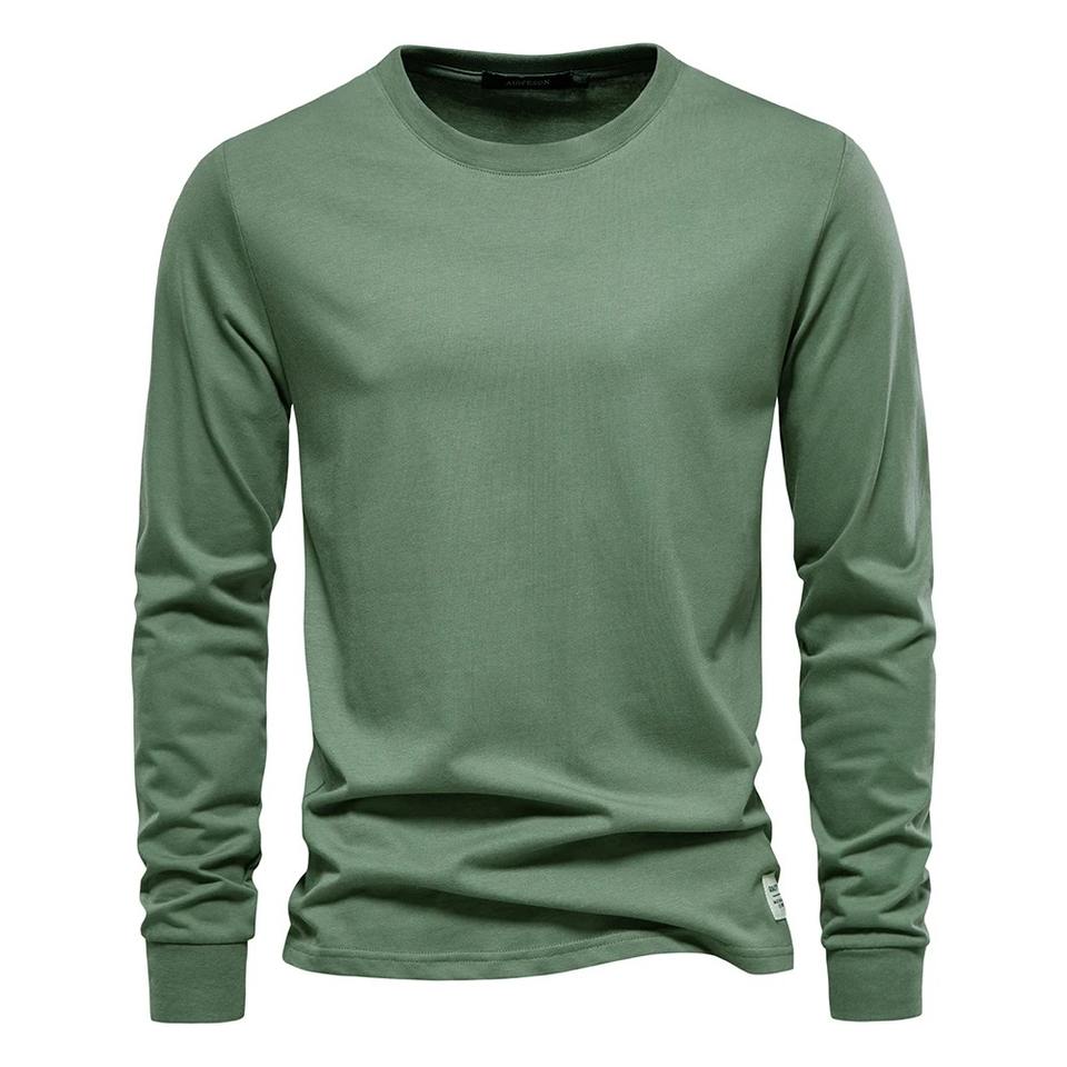Low OEM Solid Color 100% Cotton Breathable Quick Dry Eco-Friendly Fleece Men's Casual O-neck Long Sleeve T-shirt High Quality