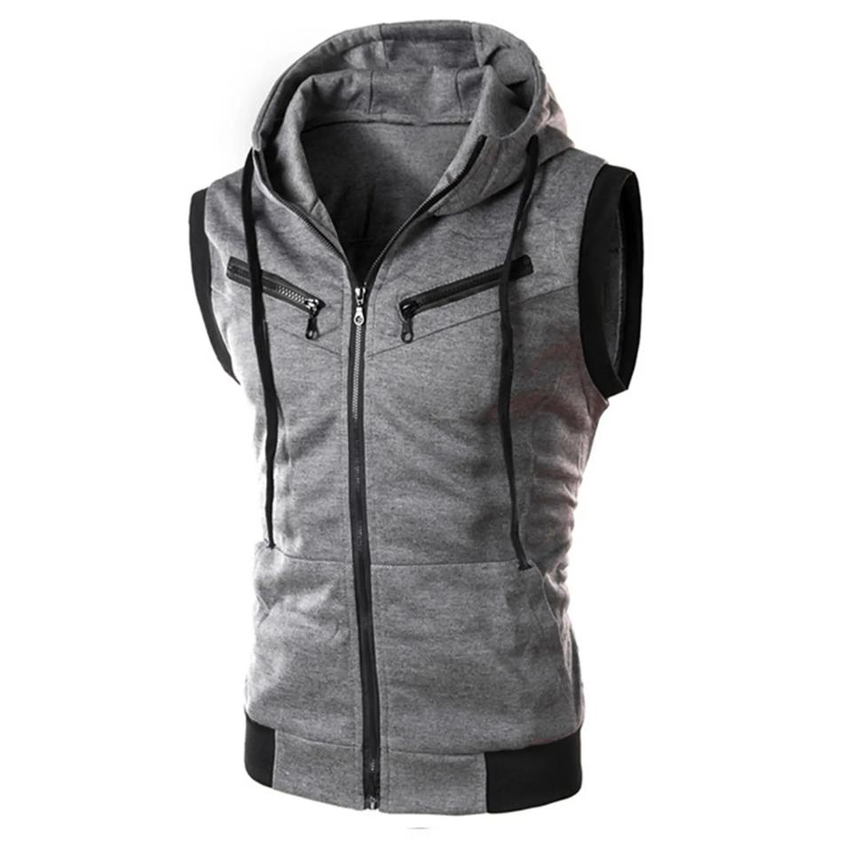 Low OEM Summer Color Sports Men's Zipper Sleeveless Fitness Hoodies Hooded Vest Men's Clothing Fashion Men's Casual Running Top