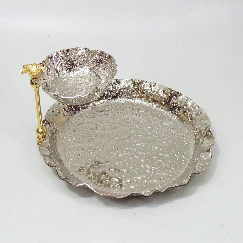 Low Price Fantastic Quality Metal Serving Tray with Mini Bowl New Modern Designer Ramadan Tray for Snacks