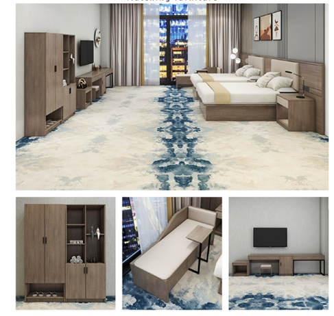 Low Price Full Hotel Bedroom Furniture Set Single Double King Queen Size Wood Bed Frame & Headboard with Wardrobe & Nightstands