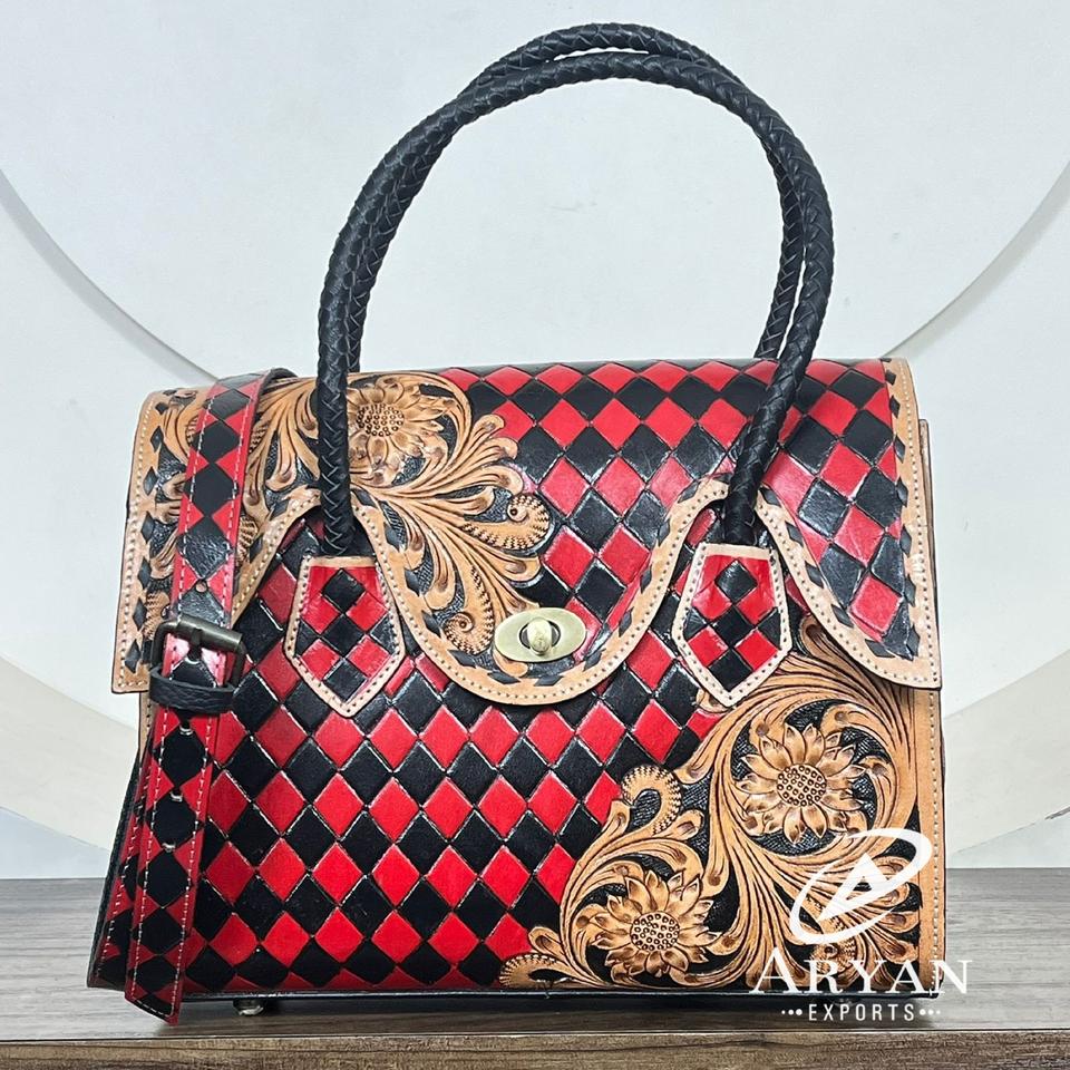 Hand-Tooled Checkered Leather Handbag