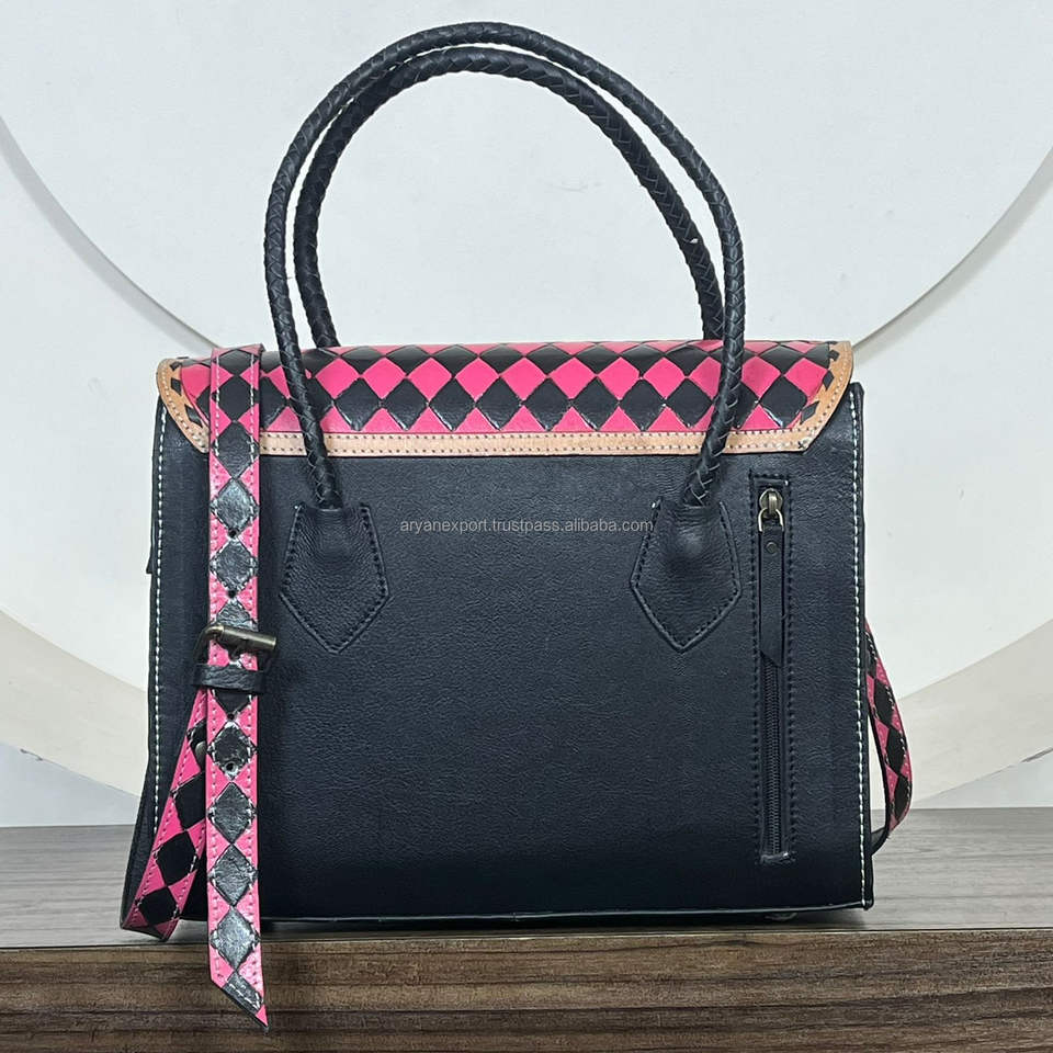 Low Price Hand Tooled Cowhide Leather Tote Bag with Checkered Pattern Western Handbag Stylish Women's Fashion Crossbody Purse