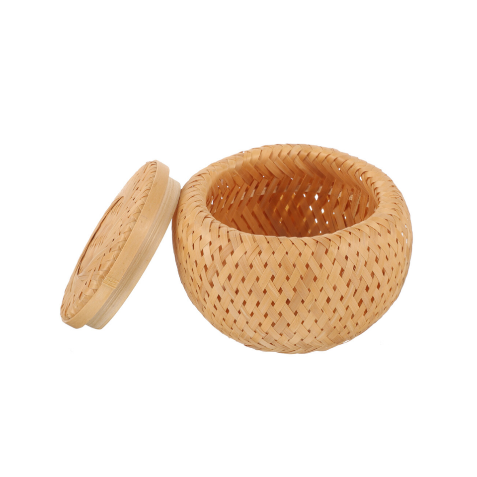 Low Price Handwoven Bamboo Mini Basket Lid Biodegradable Eco Friendly Storage Flower Pot Tea Canister Gift Box Vietnam