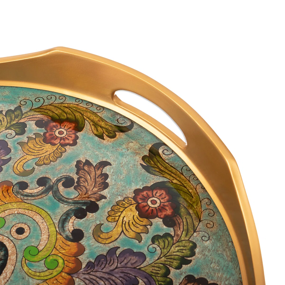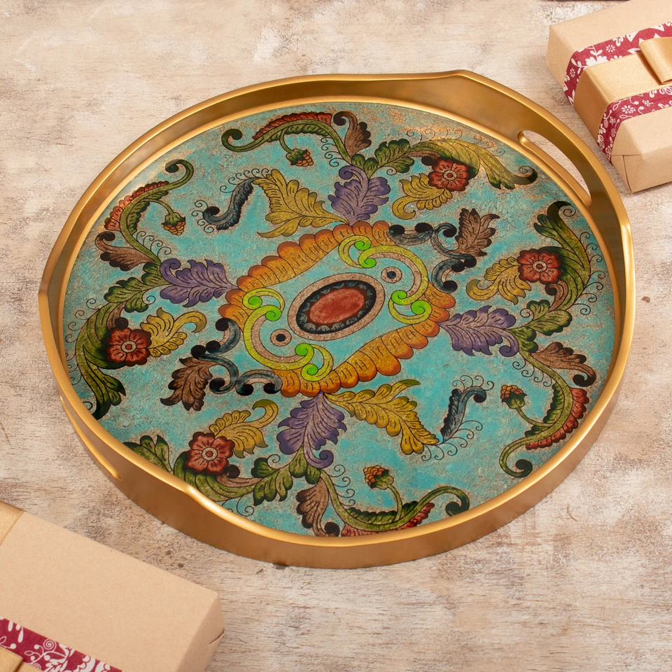 High-End Wooden Round Serving Tray for Dishes & Plates for Home or Restaurant Use Printed Beautiful Design Serving Tray