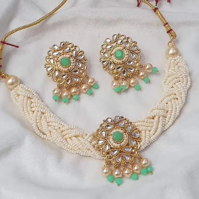 Low Price Indian Jewelry Traditional Gold Plated Crystal Kundan Bridal Choker Necklace & Earrings Jewelry Sets for Girls