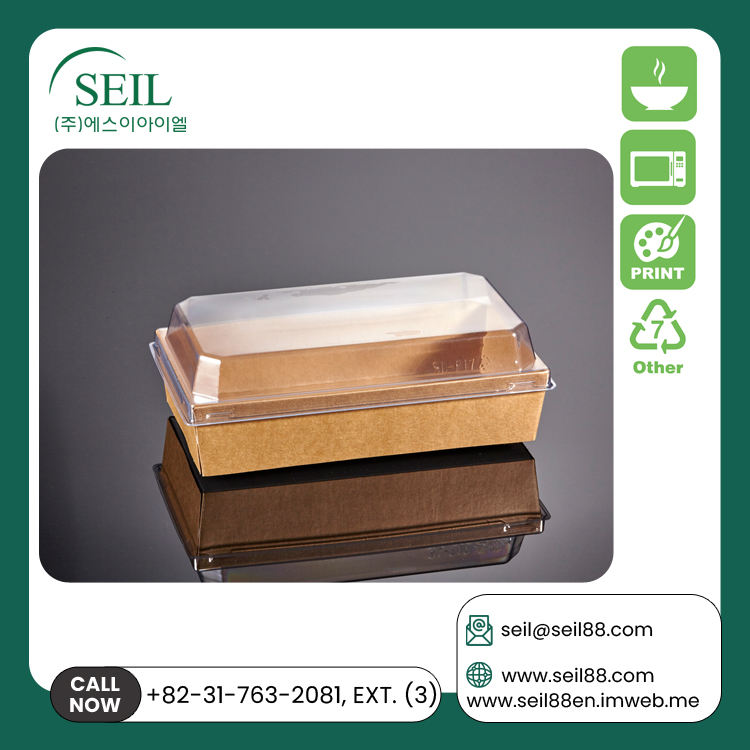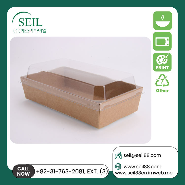 Low Price Made in South Korea Customized Rectangle Shape Food Packaging Disposable Kraft Paper Food Container Box (SL-P17-3)