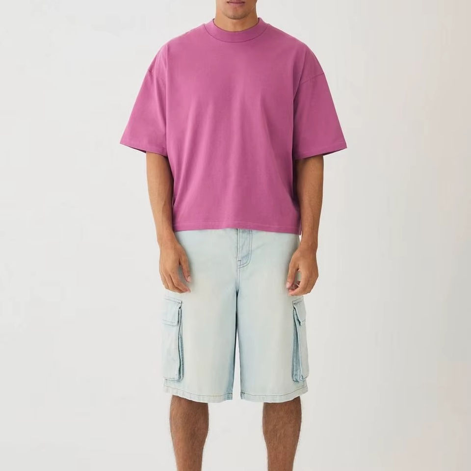 Low Price Men Cropped T Shirt Custom Logo Street wear Heavyweight Top Graphic Cotton Oversize Unique Cropped T Shirt For Men