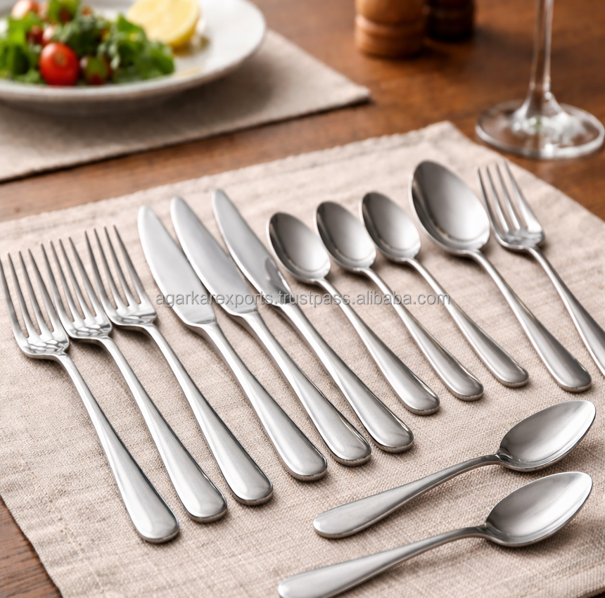 Low Price Modern Luxury Stainless Steel Table Spoon & Forks Set 12pcs Mirror Finish Dishwasher Safe for Restaurant Party Use