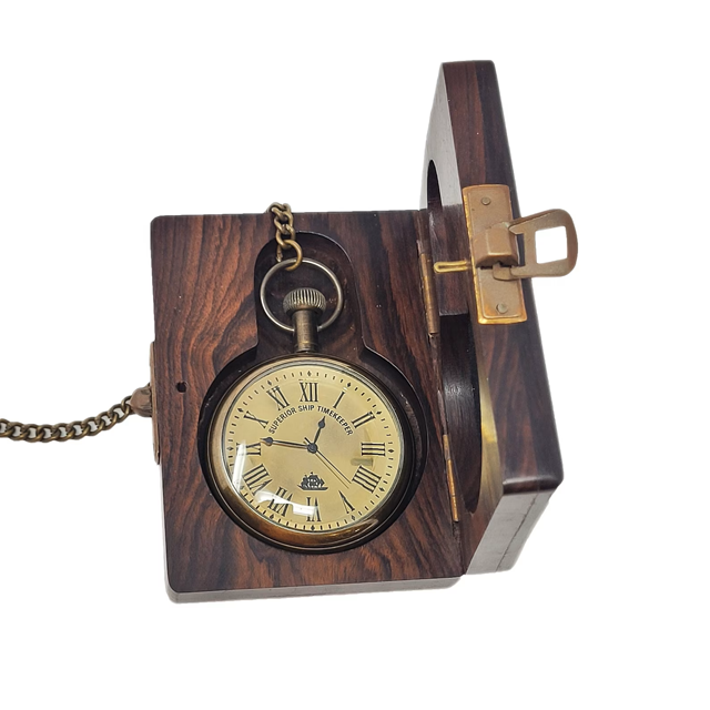 Low Price Nautical Brass Pocket Watch With Wooden Box Personalized Pocket Watch Engraved Watch Gifts For Him Men's Gift