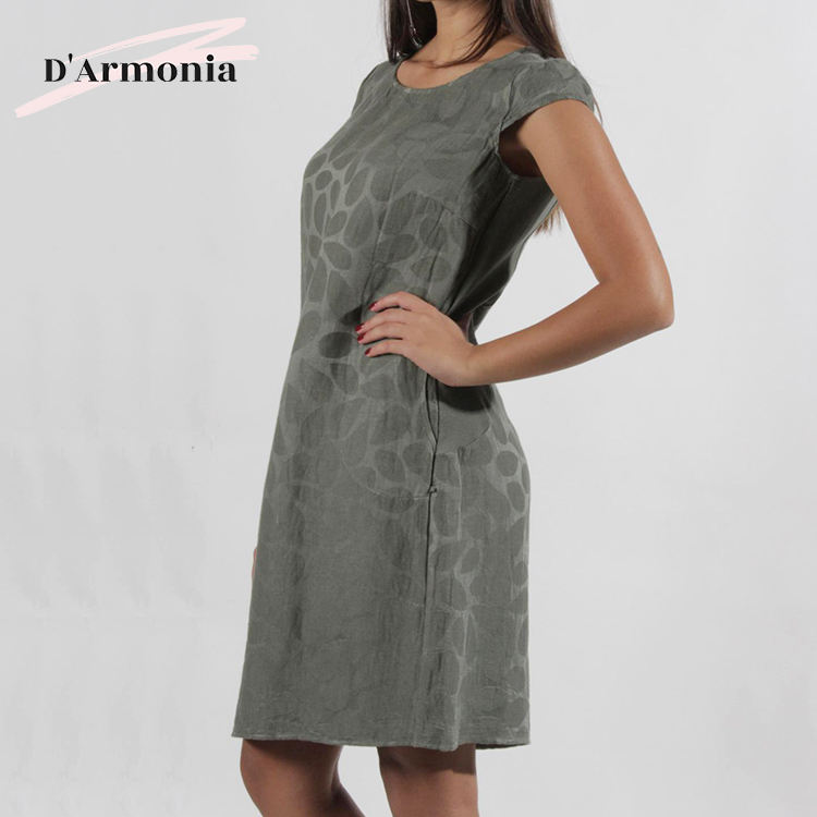 Low Price O-neck Daily Dress Silm Solid Dress for Women Made in Italy