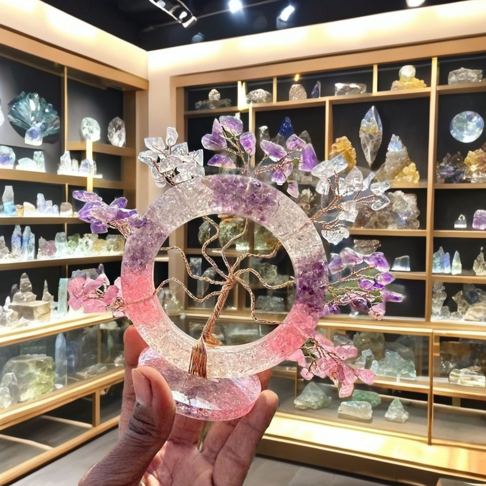 Low Price On Soha Agate Natural Crystal Gem Tree with Orgonite Base Amethyst, Rose Quartz & Clear Quartz Decoration Tree On Sale