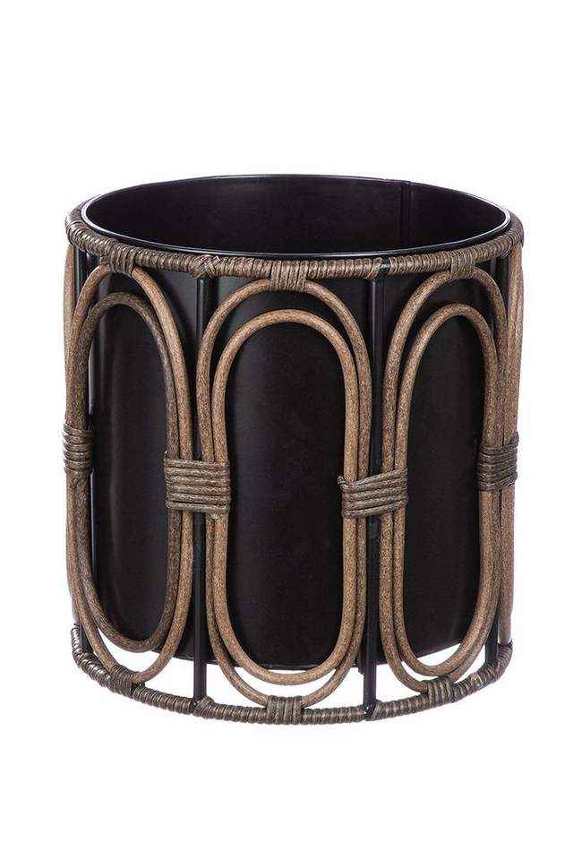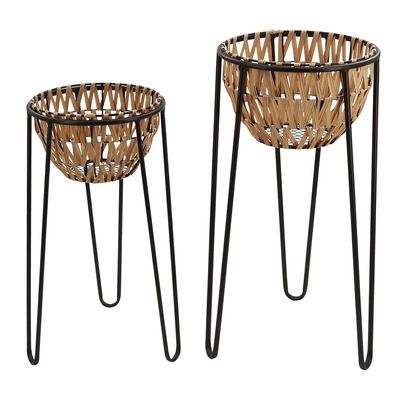 Low Price Smart Pots & Planters Garden Decor Rattan Planter with Iron Stand Large Floor Standing Black Stand
