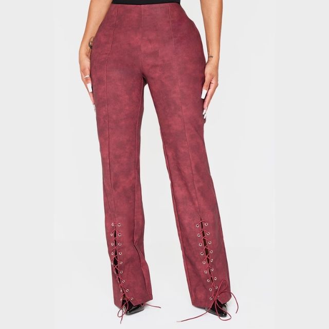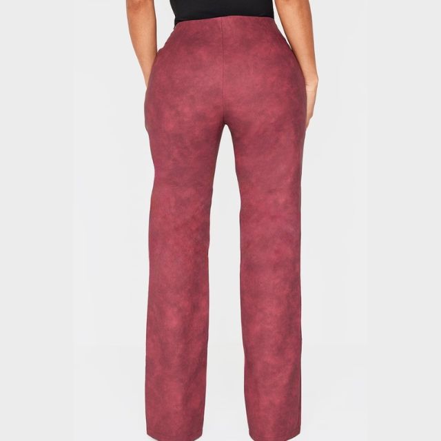 High Waist Women's Breathable Leather Leggings with Satin Woven Fabric Custom Made