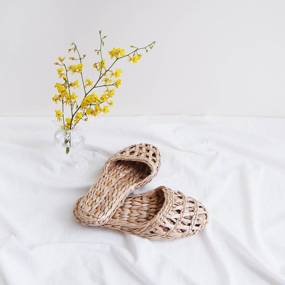 Low Price Water Hyacinth Shoes Natural Woman Footwear Ladies slippers Comfortable Flat Sandals for Women