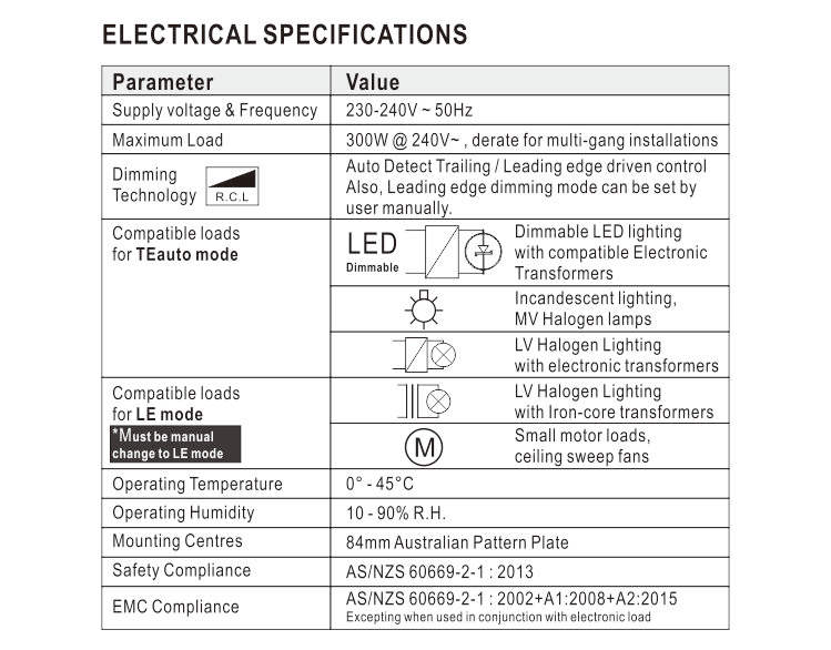 AU Universal LED Dimmer with Manual Switch Low Voltage 220v Halogen Lamp Max Load Power 300w