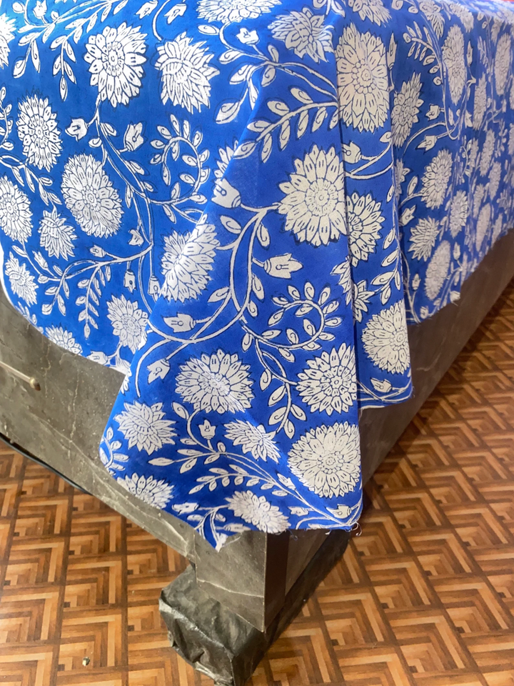 Products Name:Shiny Blue & White Floral Indian Hand Block Printed Table Cover
