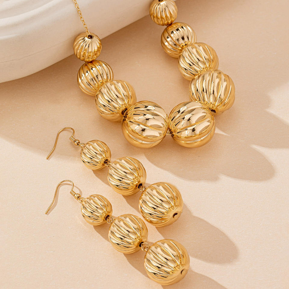 Lucky Bead Pendant Earrings Necklace Set Women Retro Trend Round Bead Clavicle Chain