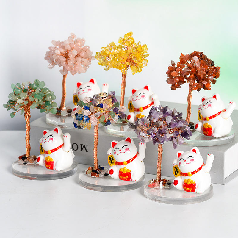 Keyword:Natural Crystal Tree Lucky Cat Money Tree Crystal Crafts