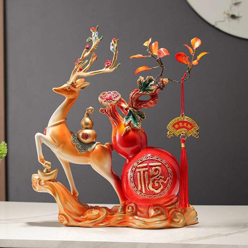 Lucky Deer Gourd Epoxy Resin Artistic Sculpture Ornament Living Room Wine/TV Cabinet Entrance Home Decoration New Chinese