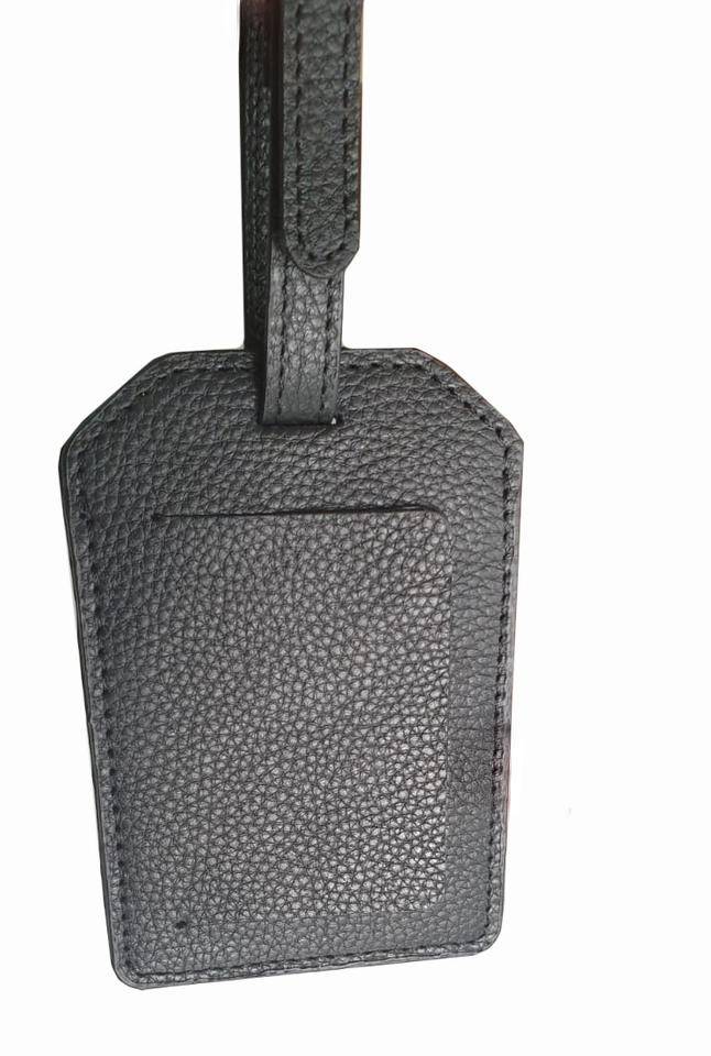 Luggage Tag High Quality Real Leather Tag for Suitcase Womens Mens Soft Black Color Adjustable Buckle Strap