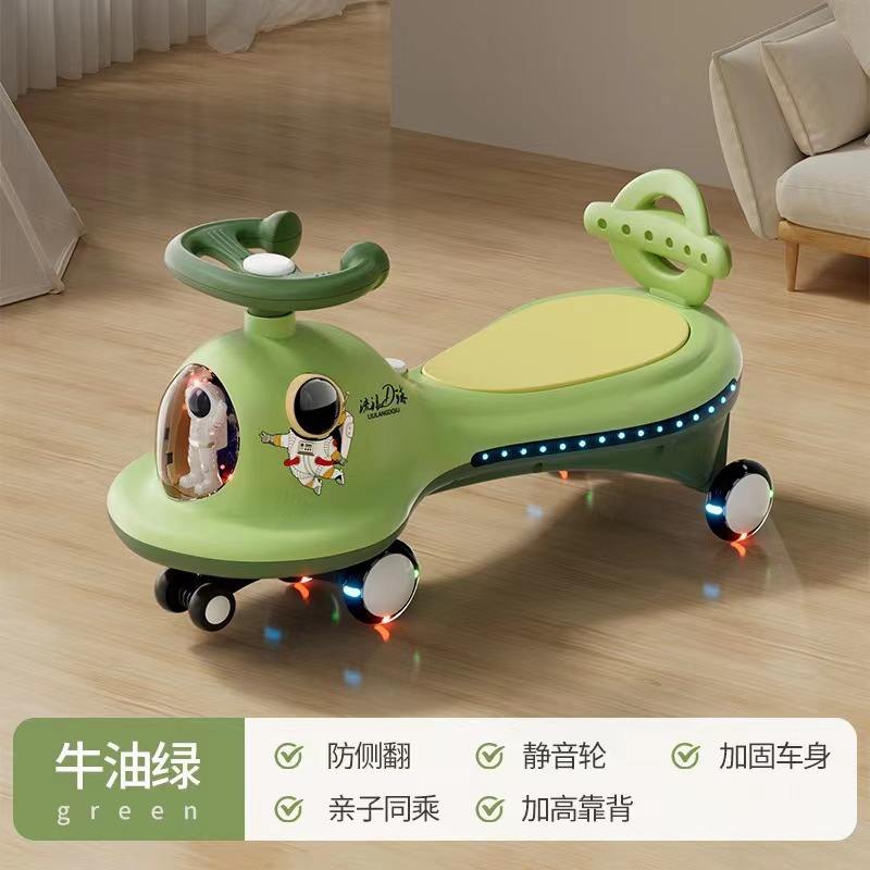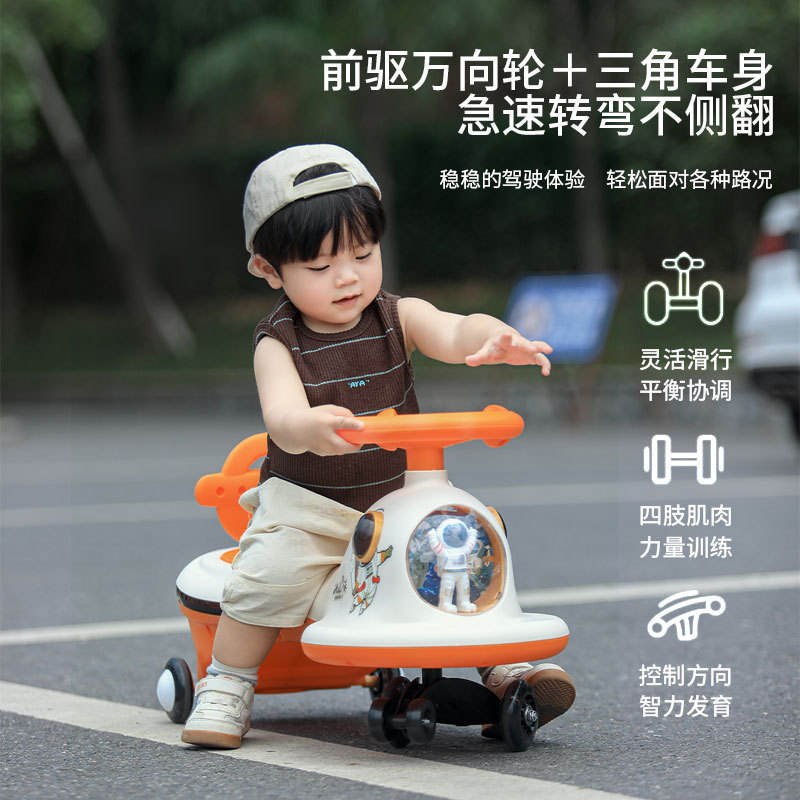 Lukangkang Kids Balance Bike Orange White Space Theme Four Wheels Silent Ride For Boys And Girls