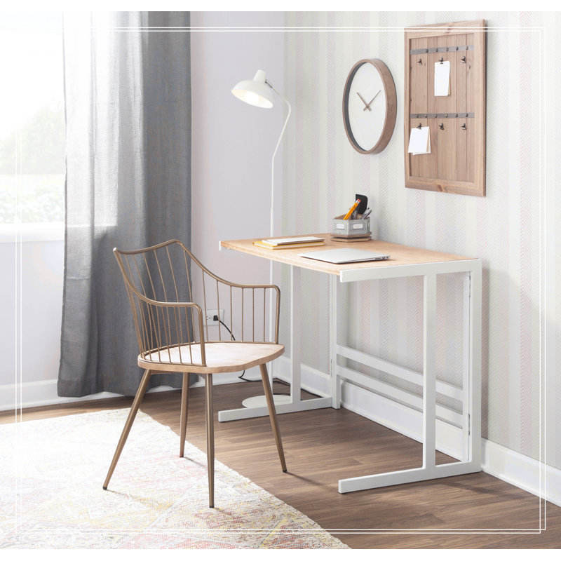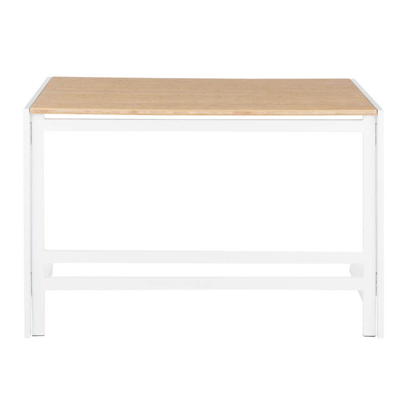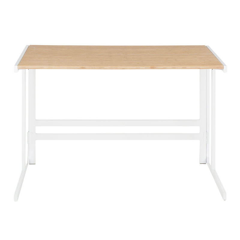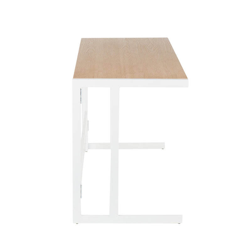 LumiSource Roman Industrial Office Desk in White Metal and Natural Wood-Pressed Grain Bamboo Computer Desk