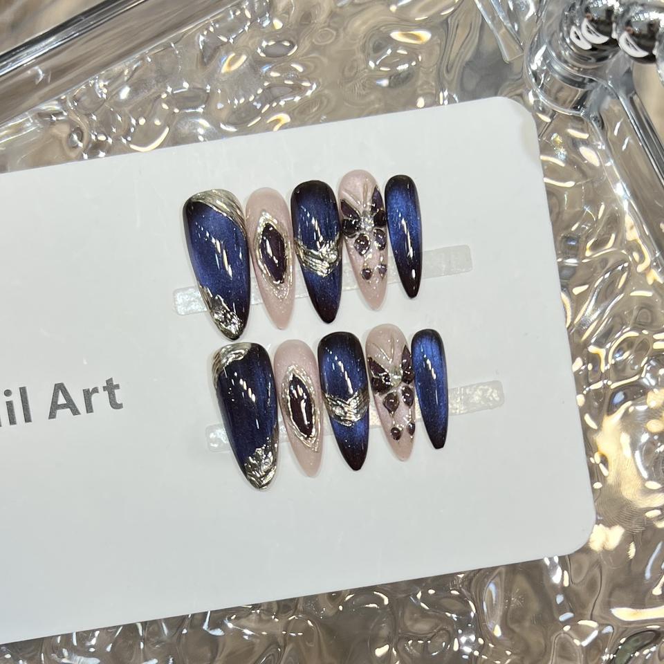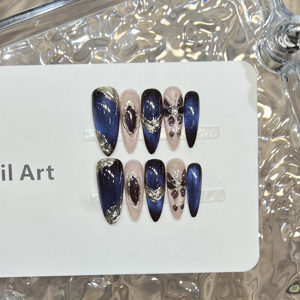 Lunar Mirage long oval Nude to blush gradient base Regal Chic Dark Romance Cat Eye Midnight Blue