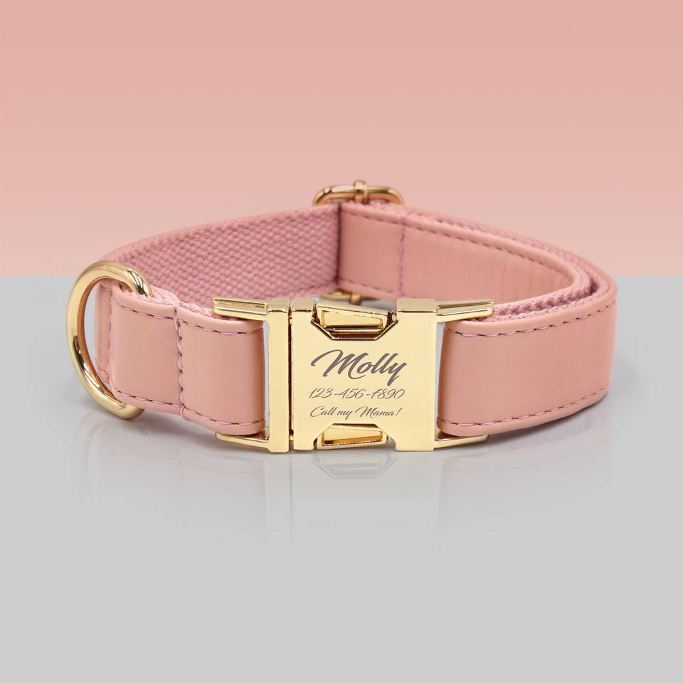 Lunarkon Pink Leather Luxury Dog Cat Collar Lead Set Personalized Engraving Quick Release Dog Lead Collar for Puppy Accessories