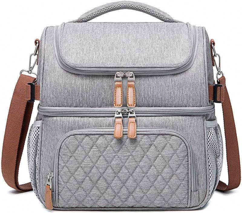 Lunch Bag for Men Women, Insulated Lunch Tote Bag for Work, Large Leak-Proof Lunch Box Double Deck Lunch Cooler Purse