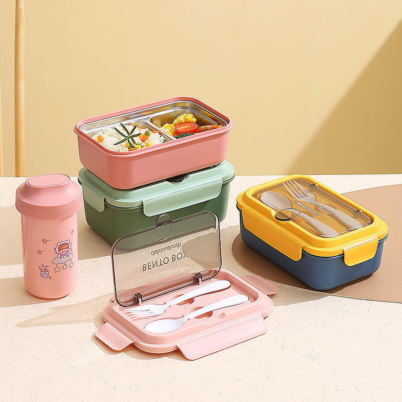 Lunch Box Bento Box With Cutlery Food Grade Plastic Rectangle For Children Student Meal Storage 304 Stainless Steel