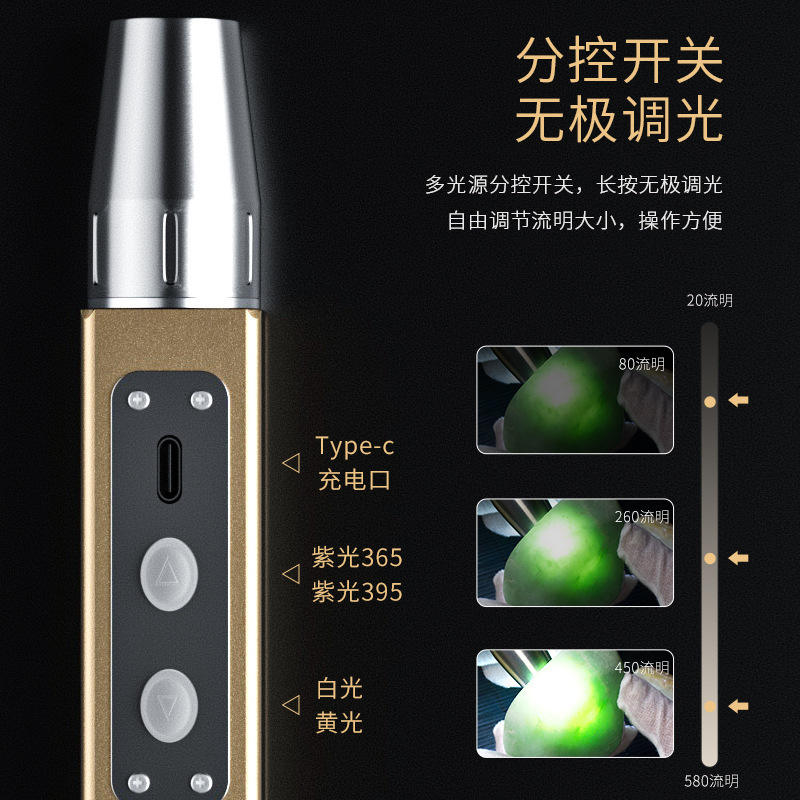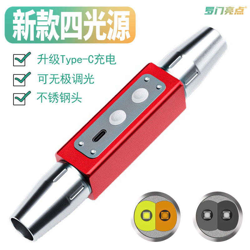 Luomen Rechargeable Flashlight T9723 8 Led Type C Battery Powered Camping Night Fishing Detection Light Stainless Steel