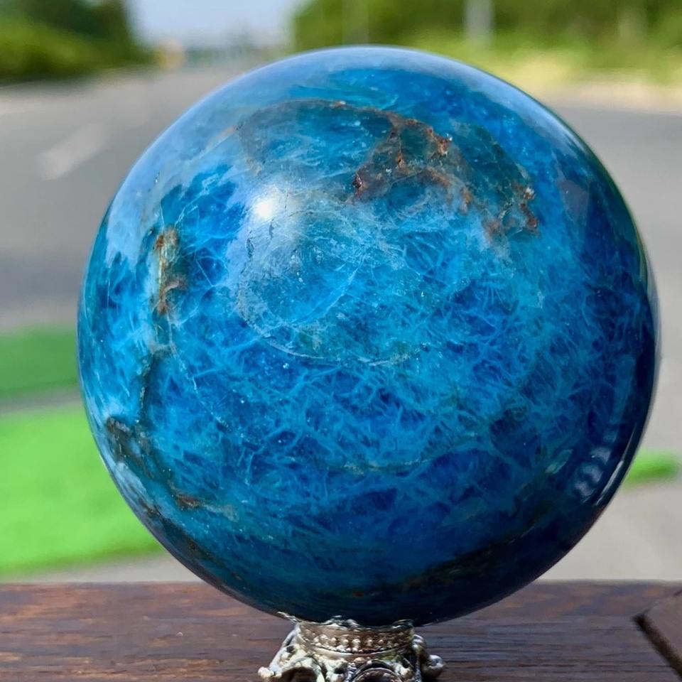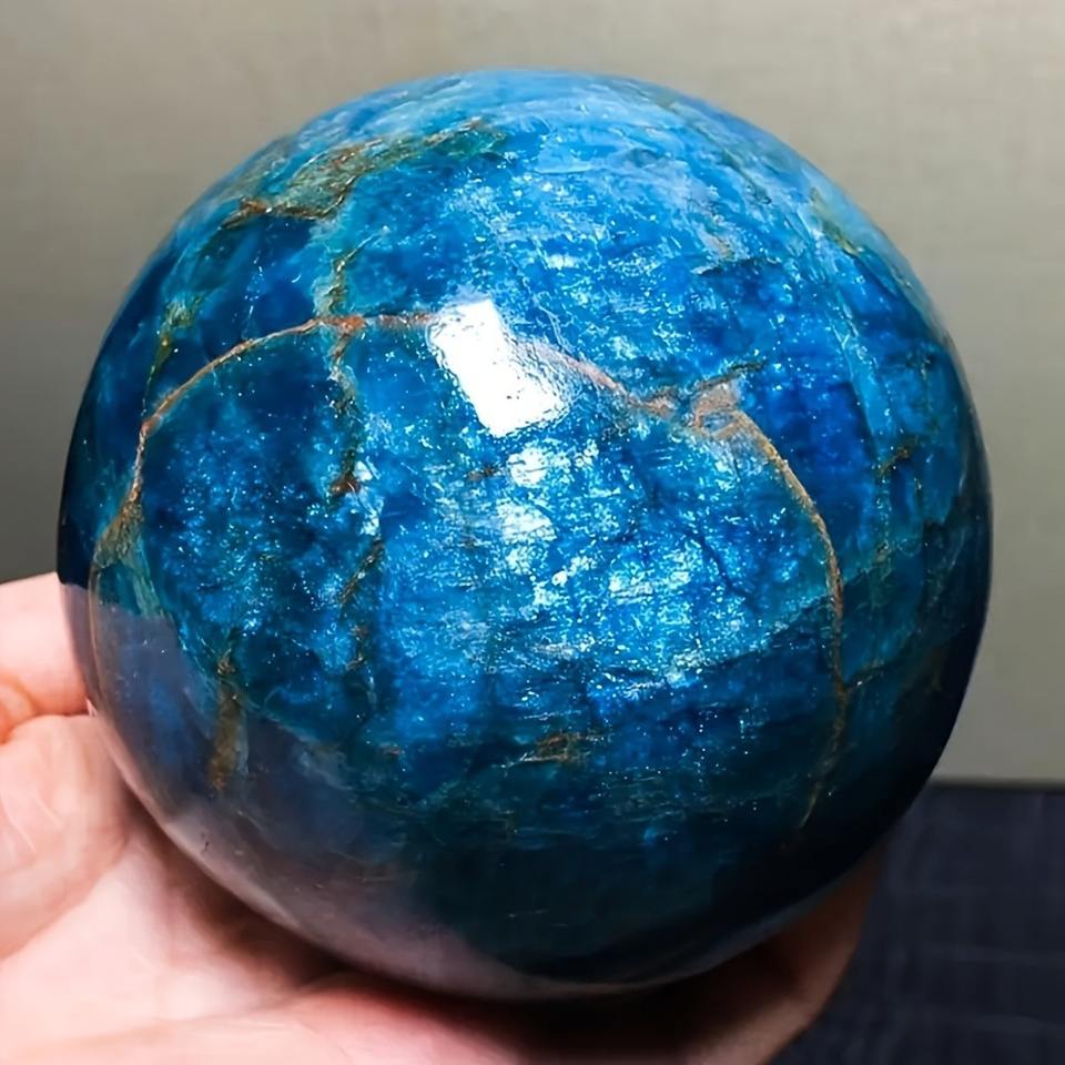 Lustre Large 7-9cm Floral Engraved Blue Apatite Crystal Ball Healing Stones Sphere for Meditation and Anniversary Gift