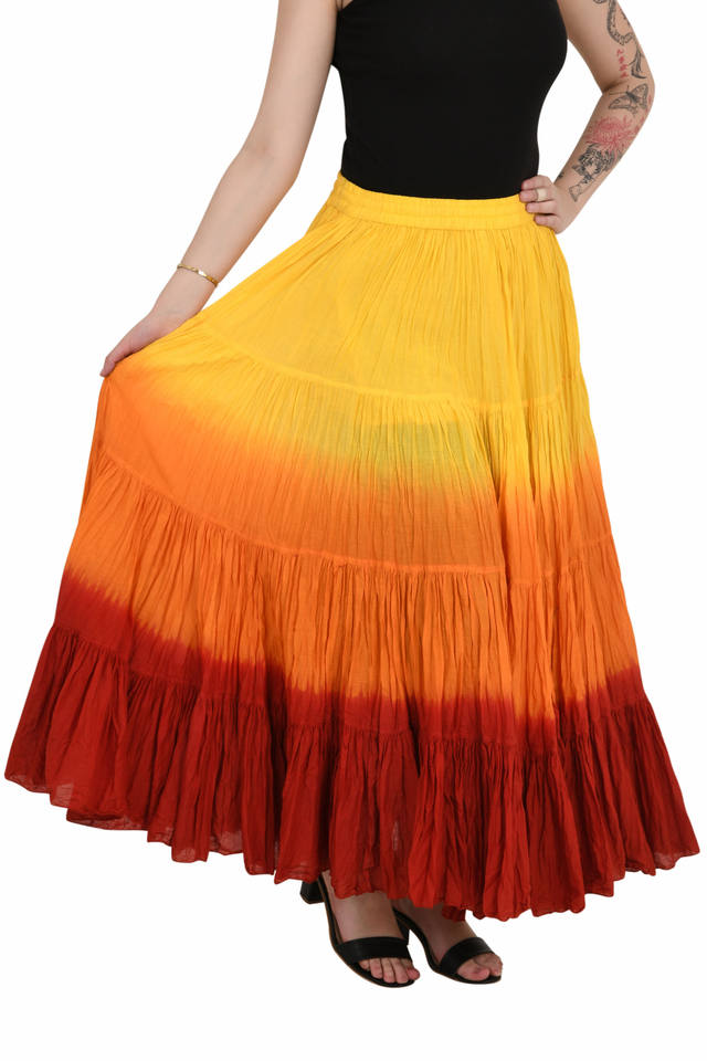 Lux Artisan Women's Handmade Solid Boho Maxi Skirt Gypsy Style Dyed Cotton Flare Skirt Breathable Adjustable Waist Performance