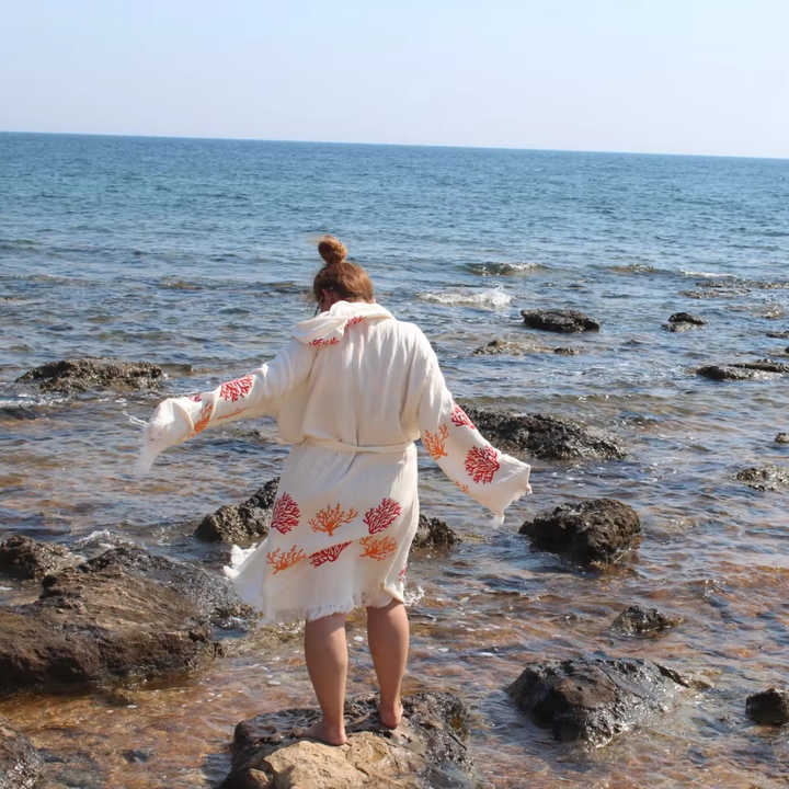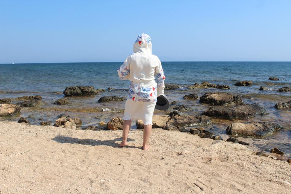 Lux Hooded Soft Turkish Muslin Fabric Bathrobe Colorful Printing Women Men Kids Beach Towel Spa Bathroom Home Hotel Quick Drying