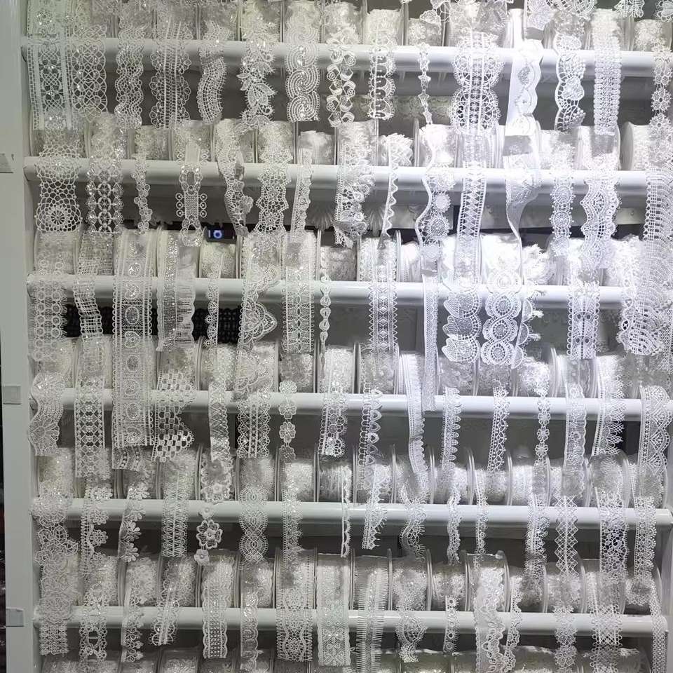 Luxe High Quality long Luxury Fabric nylon gpo swiss lace material Polyester Mesh Lac charm bridal Embroidery Lace coral Trim