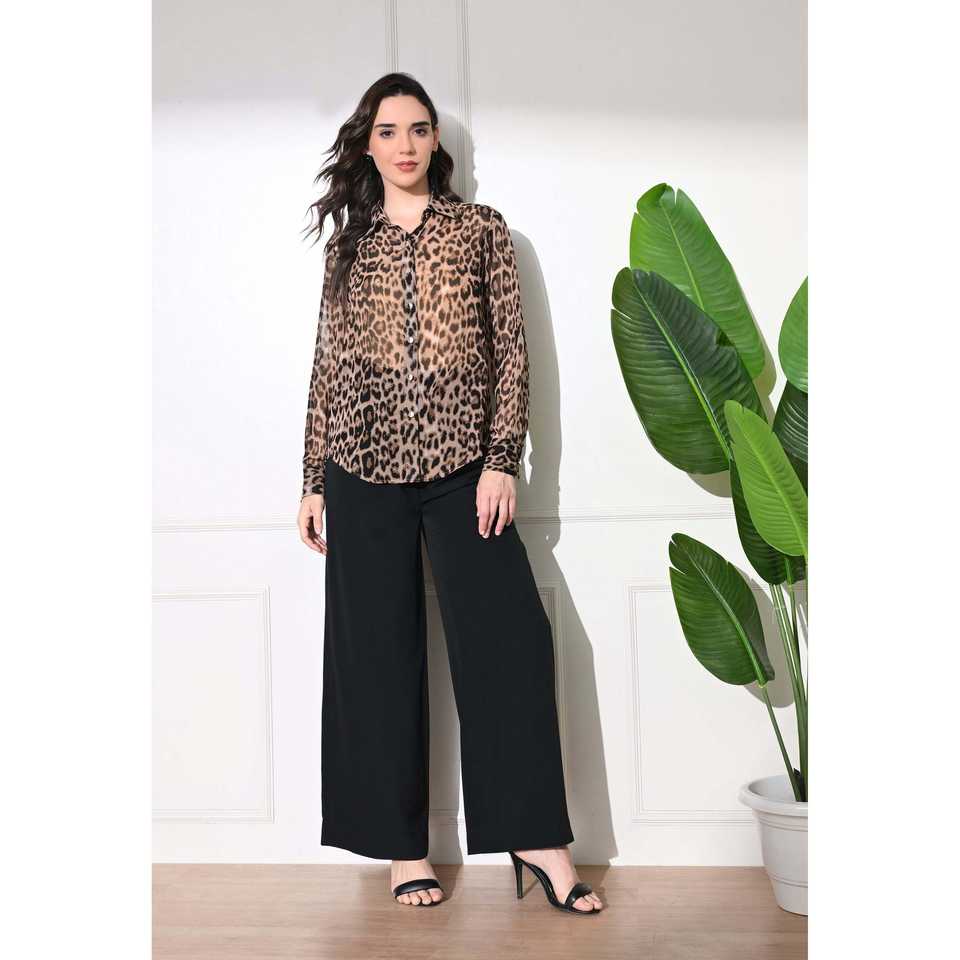 Luxe Safari Vintage Leopard Print Georgette Shirt XL Size Casual Daily Breathable Wrinkle Front Button Spring Autumn Season