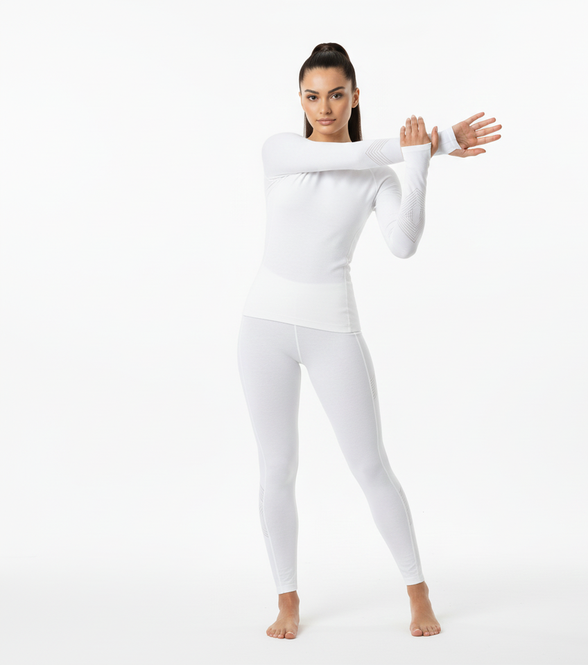 Luxe Winter White Women Thermal Suit Full Sleeve Soft Breathable Fabric Styled for Refined Seasonal Comfort