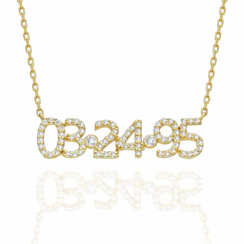 Luxira Jewels Vintage Customized Date Necklace Birthdate 14k Gold Lab Grown Diamond Coordinate Necklace Special Gift Silver