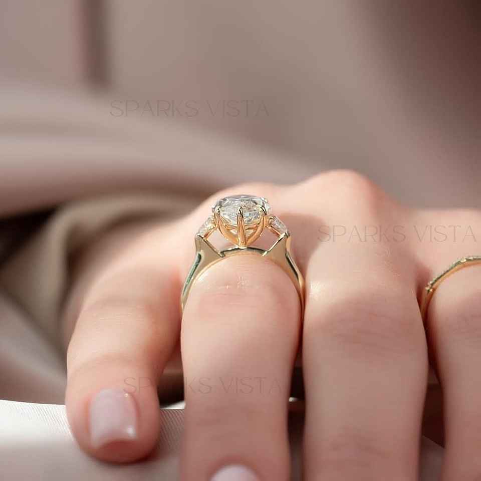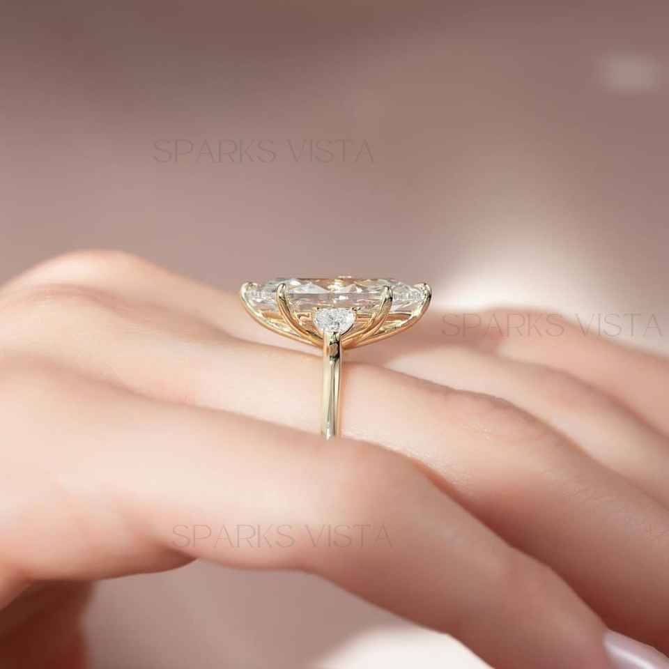 10K/14K/18K Gold Lab Created Marquise Cut Moissanite Classic Three Stone Customized Design Engagement Ring GIA Certificate