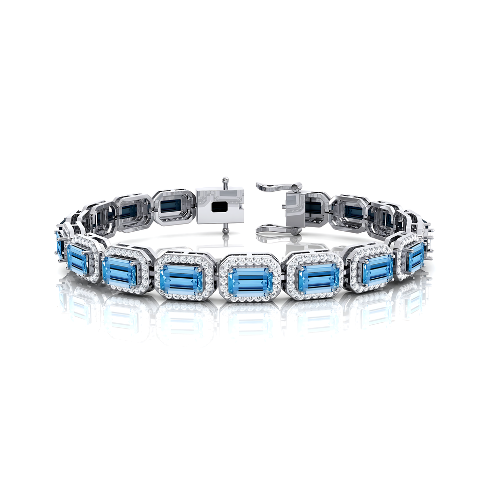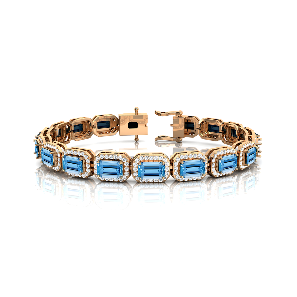 Luxurious 18K Gold Natural Aquamarine Gem Stones & Diamond Tennis Bracelet 7 Inches Customized Tennis Bracelet for Women Men