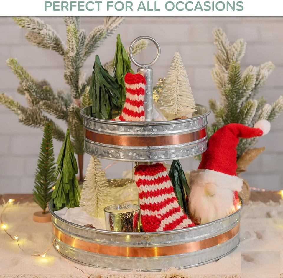 Luxurious 2 Tier Cake Stand Galvanized Metal with Copper Lining Perfect Hotel Restaurant Kitchenware Accessory Elegant Display