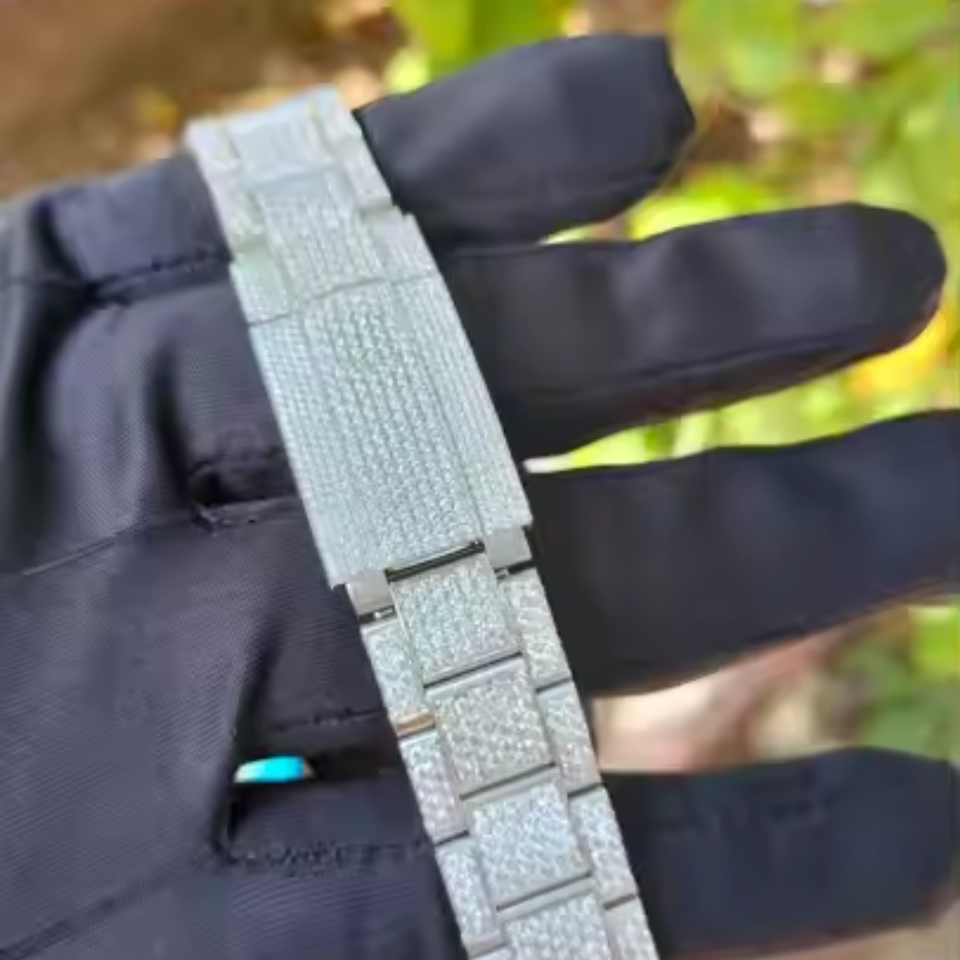 Luxurious 41mm Quartz Movement Sport Watch with Roman Numeral Dial Diamond Studded Fully Iced Hip Hop Style Band 20mm Width