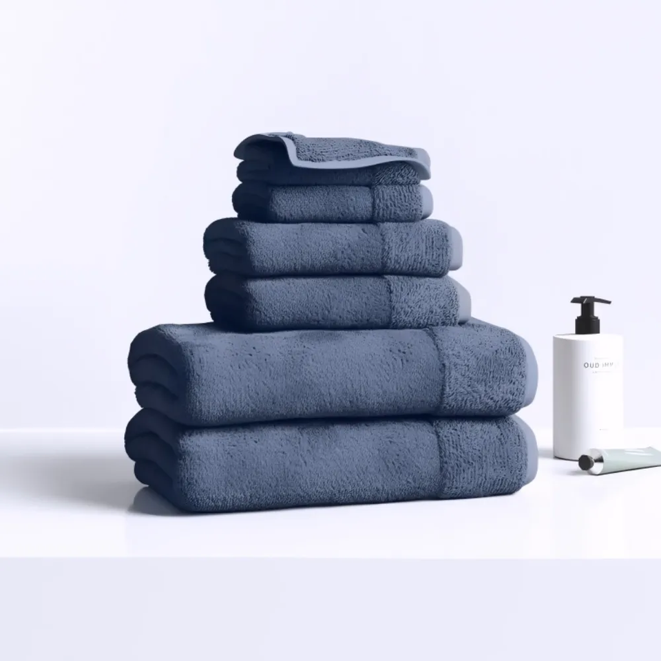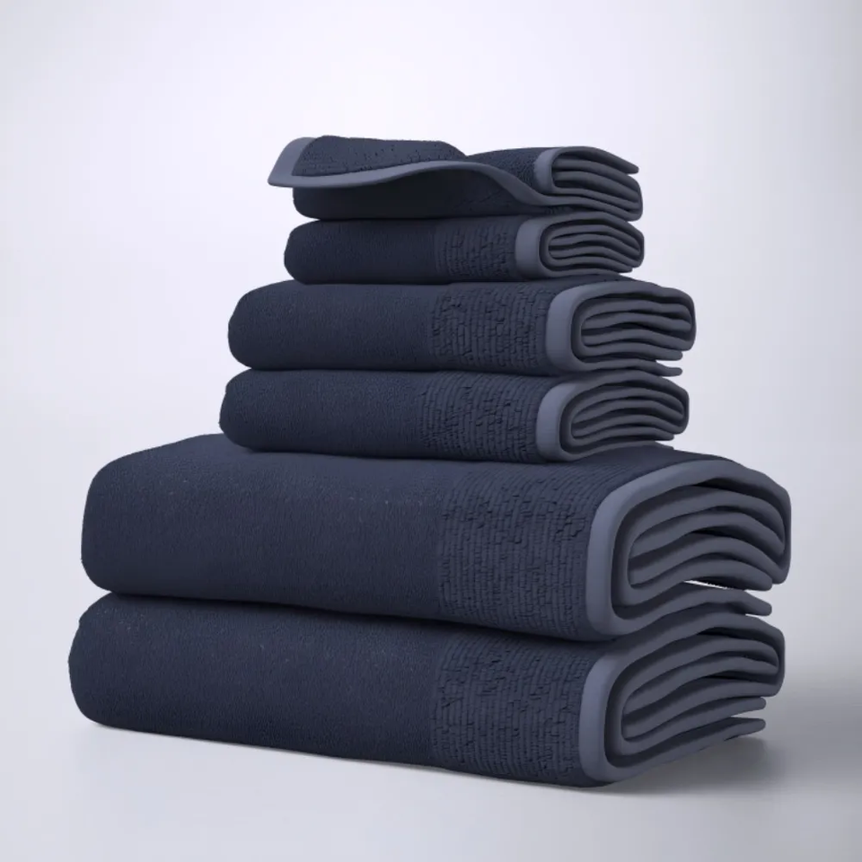 Luxurious 6-Piece Plush Cotton Towel Set 600 GSM Ribbed Quick-Dry Absorbent Bath Hand Face Towels Durable and Elegant